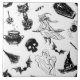 Objets d'Halloween dessinés sur papier, puis tracés dans Illustrator pour créer motif.