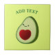 Avocat de style dessin animé au coeur rouge. Carrelage décoratif personnalisé en céramique. Modifier le texte pour customiser. Idée cadeau pour les amateurs d'avocat.
