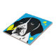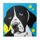 Chien de pointer anglais noir et blanc sur un arrière - plan bleu avec cercles jaunes