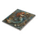 Belle sirène aux cheveux oranges tenant une coquille de mer dans un design 3D avec des teintes turquoises, or, cuivre.