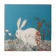 C'est une illustration vintage d'un lapin blanc. Il est assis dans un coin d'herbe et de fleurs. Elégante palette de couleurs bleu, gris et orange. Voir mon magasin Art by MAR pour apparier les produits avec ce design.