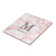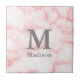 Le carrelage en céramique présente un joli motif en marbre faux rose. Il y a un gros monogramme gris au-dessus du texte affiché qui peut être modifié pour ajouter du texte personnalisé comme un nom.