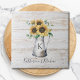 Ajoutez du charme à votre espace avec ce carrelage de tournesol rustique. Doté d'un monogramme personnalisé et d'eucalyptus sur un arrière - plan en planches de bois blanc, adapté à la ferme!