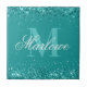 Elégante Parties scintillant Turquoise Bleu Vert et Blanc Monogramme tuile décorative avec un nom de script de calligraphie personnalisable et un modèle monogramme audacieux.
