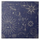 Tuiles décoratives tendance caractéristiques dessinées à la main céleste et astronomique modèles y compris soleils, planètes et étoiles sur arrière - plan marine foncé