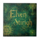 Golden elven script glows against a deep green backdrop, surrounded by mystical symbols and geometric sigils.