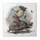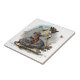 Un lapin utilisant des soies rayées bleues et jaunes et un casquette vert et brandissant une culture d'équitation, prises les rênes à la tortue qu'il monte dans cette illustration antique d'un livre de 1899 enfants.