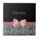 Une tuile noire et blanche à la mode d'empreinte de léopard avec un arc rose mignon de ruban enveloppé comme un présent. Personnalisez en ajoutant votre nom. Perfectionnez le présent pour une fille girly de l'adolescence !