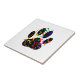 Empreinte de patte de chien avec confetti et diffuseur de soirée. Carreaux céramiques carrés personnalisés avec un design original. Une idée cadeau unique.