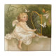 Une illustration vintage d'ange comportant un ange jouant un instrument de musique et observant des papillons.