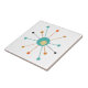 Ce fabuleux carrelage décoratif moderne du milieu du siècle présente une étoile atomique aux couleurs bleu turquoise, deux tons d'orange, crème et noir. Cela ajoutera à votre décor une touche colorée !