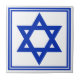 Carreau de céramique carré avec une image d'une étoile de David bleue profonde et d'une double frontière bleue profonde sur le blanc. Pot de sucrerie See plaque à papier, tasse, plat de mélamine, de plat de porcelaine, assortis et dessous de verre. Voyez la collection entière de tuile de Hanoukka dans la section de VACANCES.