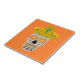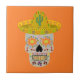 Cette magnifique tuile présente une image graphique d'un crâne inspiré de Dia de los Muertos, le jour mexicain des morts. Le crâne est gris pâle et porte un sombrero jaune. Il a des dents d'or et des tournesols mexicains, également appelé Tithonias< au lieu des yeux. Le sombrero a un cactus dessus et est couvert de motifs tourbillonnants et de piments de chili rouge et vert. Le crâne lui-même est recouvert de jolies fleurs colorées de différents types.