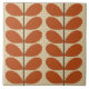 Carreau de céramique dans un motif inspiré danois moderne de textile de la moitié du siècle de feuille stylisé - brun/terre cuite de rouille accentuée avec brun chocolat, sur un arrière - plan modelé, beige et crème