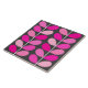 Carreau de céramique dans un motif inspiré danois moderne de textile de la moitié du siècle du feuille stylisé - nuances de rose, de rose en pastel au fuchsia profond/aux roses indien, sur arrière - plan gris/gris foncé de graphite