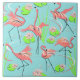 Un design lumineux et coloré d'inspiration du milieu du siècle avec une touche rétro : avec des flamants roses "dansant" contre un arrière - plan turquoise recouvert de nénuphars. Un design personnalisable pour personnaliser avec votre propre texte, images et idées. Image d'art numérique originale créée par Jess Perry sur QuirkyChic Retro.