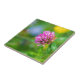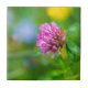 Vue rapprochée d'une fleur de trèfle rose contre l'arrière - plan multicolore lisse d'une prairie d'été. Couleurs violettes, vertes, jaunes et bleues. Le symbole de la bonne vie, du confort, de la richesse et de la prospérité