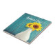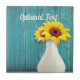 Des tournesols potés sur une planche de bois patiné rustique peinte en bleu de verre marin. Customisez à votre goût !