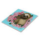 Une mignonne paresse assise au milieu de fleurs roses sur fond bleu