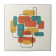 This abstract composition captures the essence of classic Mid-Century design through its use of simple, overlapping, and rounded rectangular forms. The shapes are arranged to suggest a floating, weightless structure, with some forms defined by solid colors (burnt orange, teal, and mustard yellow) and others by thin black outlines. The minimalist yet dynamic arrangement creates a sophisticated, retro-modern look, making it an ideal choice for a striking accent tile or kitchen backsplash. Search ID1224 to see other designs in this series. Note: design adapted from generative content.