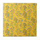 Seamless floral pattern with delicate branches, blue-green leaves, and pink buds on a vibrant yellow background, creating a cheerful, lively tone.