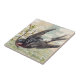 Romantic vintage picture of a flying swallow with a blossoming twig with the sea underneath.