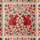 Motif de forêt d'écureuils rouges avec des cônes de pins, branches de pins, glands, feuilles de chêne et baies. Idéal pour une maison de lac ou un décor de chambre saisonnier. Art original de Nic Squirrell.