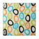 Un motif de formes colorées qui ressemblent à des rochers composent ce design d'art abstrait inspiré de l'ère atomique des années 1950. Les couleurs sont chartreuse, orange, bleu ciel et noir.