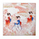 La peinture colorée japonaise vintage de porcelaine avec des geishas et le beau jardin aménagent inclure en parc des fleurs et des ponts. Photographie.