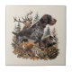 This vintage-style hunting artwork features a powerful German Wirehaired Pointer in a classic pointing pose surrounded by wildlife and forest elements.