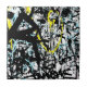 Un griffonnage de noir, jaune et bleu-clair de graffiti sur le bleu