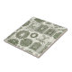 A vintage-inspired green toile seamless pattern ceramic tile featuring graceful deer resting and standing among winter foliage. The design includes evergreen trees, holly leaves, pinecones, and delicate snowflakes. This elegant and timeless illustration evokes a peaceful woodland Christmas scene.