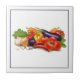 Ce trivet en céramique est présenté avec une belle impression d'art de groupe de légumes. A une bordure pourpre. Customisez cet objet ou achetez tel quel. Image stock all-free-download.com