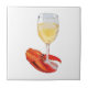 Tuile décorative illustrant une griffe de homard autour de la tige d'un verre de vin blanc. Copyright de l'oeuvre : Dominic A. White. Tous droits réservés.