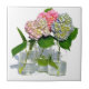 Hydrangées classiques roses, bleues et vertes dans les jarres de Mason