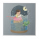 Une jolie illustration d'une fille portant Hanbok qui tient un lapin blanc et regarde une tortue