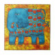 Une mosaïque de céramique colorée à motifs d'éléphant. Art par Julie Nicholls©