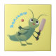 Ce mignon cricket vert adore faire du sport. Dessiné dans un joyeux style de dessin animé en buggy.