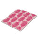 Carrelage en céramique dans un motif à tirage en bloc, basé sur une coquille de pétoncle, en rose fuchsia profonde sur un arrière - plan rose pastel