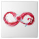 Infinity symbole of continuous stream of red pouring into glass glass glass on white background.