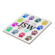 Empreinte de patte de chien dans de nombreuses couleurs. Design original. Carreaux céramiques carrés personnalisés. Modifiez les initiales pour customiser. Une idée cadeau unique pour les amoureux de les chiens.