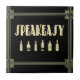 Un étiquette de vin design art déco qui dit speakeasy et décoré de bouteilles d'alcool. Un design qui définit l'interdiction rugissante des années 1920. Fait en noir et or.