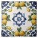 lemon bergamot cedro ceramic tile,mediterranean green yellow lemons fruit,traditional sicilian capri pomelo,,italian farmhouse quatrefoil clover,decorative antique rustic farming villa,blue and white vintage art, "off cream offwhite", "classic botanical leafy leaves", "geometric four leafed leaf", "limone amalfi italy citrus"