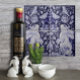 Carreau Jacobean Rabbit Oiseaux Fleurs Bleu Blanc Bas R