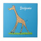 Du joyeux safari. Cette jolie girafe a un papillon sur le nez avec un arrière - plan bleu.