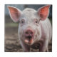 La photo est un joyeux cochon blanc qui sort sa langue.