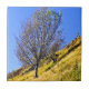 Un dessin photographique d'un arbre solitaire à flanc de colline.