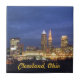 Les lumières viennent dessus beau paysage de nuit à Cleveland, Ohio sur un carreau de céramique décoratif. Disponible dans la petite taille de grande taille peut être trouble.