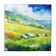 Paysage étendu "Fielddale" Yorkshire Dales Scène. Une paisible scène du Yorkshire Dales se déroule dans cette aquarelle stylisée, avec des collines ondulantes et des champs bordés de murs en pierre. Des fleurs colorées de prés rehaussent l'atmosphère paisible et détendue, reflétant le charme de cette idylle rurale anglaise.