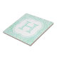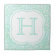 Ce carreau de céramique a une conception bleue de baisses d'aquarelle d'aqua avec un endroit pour que vous personnalisiez ceci avec votre monogramme !